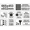 Skříňka o rozměrech 932 x 665 x 453 mm je zhotovena z oceli, nosnost horní desky činí 210 kg. Prvních 5x horních zásuvek má nosnost po 25 kg, a spodní 2x zásuvky mají nosnost 35 kg.