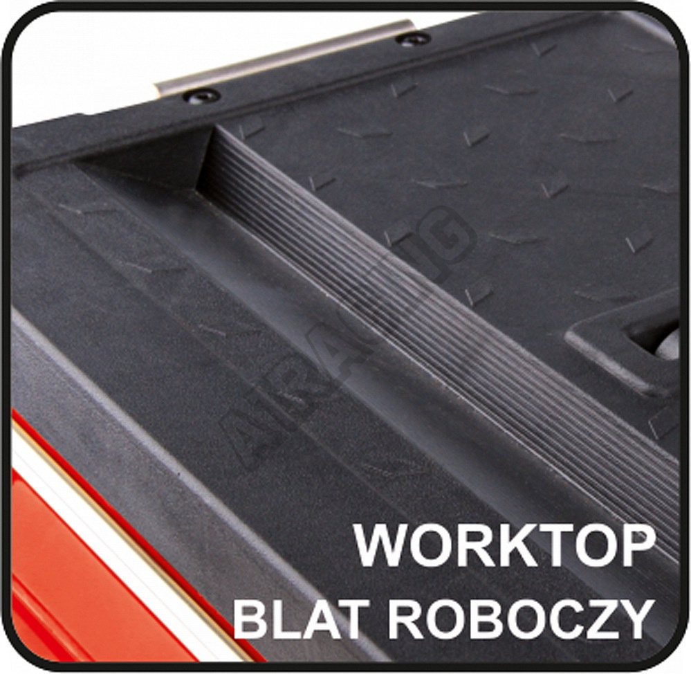 Modul má ploché víko, které lze použít jako pracovní desku. Kromě toho je modul vybaven pohodlnou, protiskluzovou rukojetí, postranními zvedacími rukojeťmi a plastovými rohy.