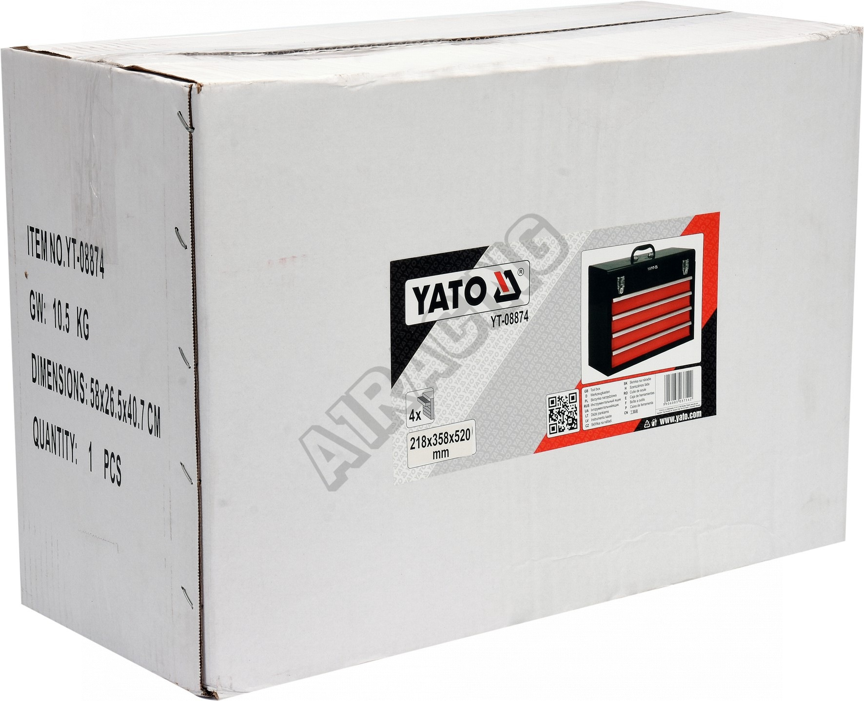 Skříň má rozměry 520 x 360 x 218 mm, vrchní část je opatřena madlem pro snadné přenášení.