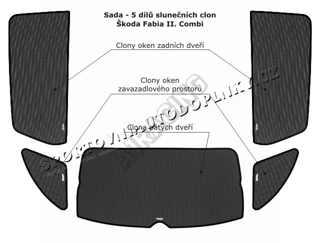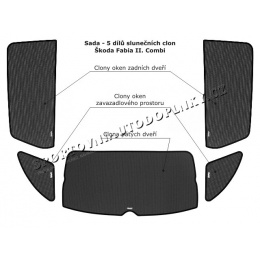 Sluneční clony sada - zadní dveře, zadní okna, páté dveře, Škoda Fabia II Combi