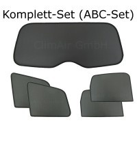 Sada - 5-ti dílů. Clony stíní zevnitř celou plochu oken. Jednoduchá montáž/demontáž nasazením zevnitř vozu. Clony jsou vyrobeny z černé tkaniny a mají ocelový pružný rámeček.