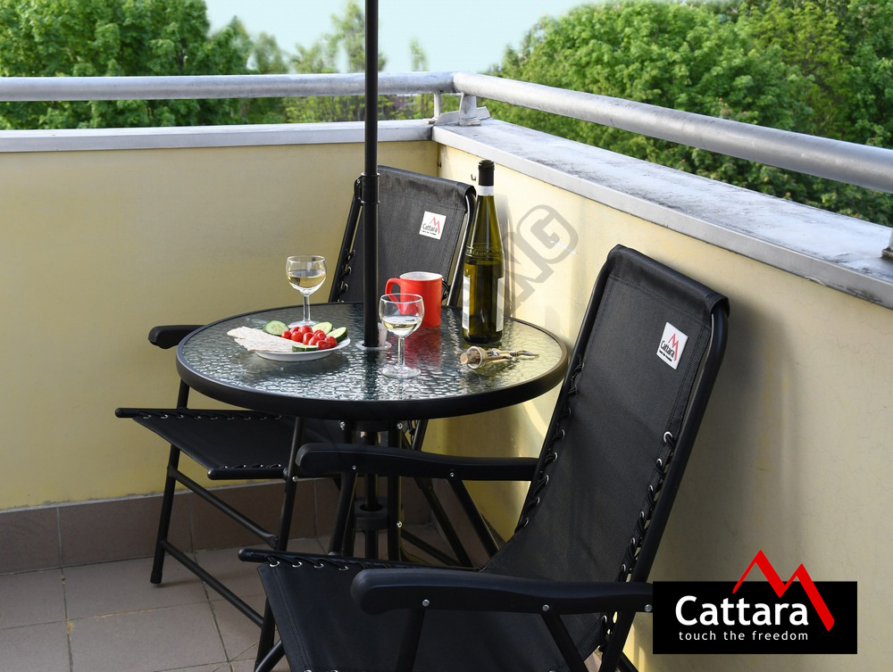 Slunečník je přímo určen k použití se stolkem TERST. Díky malým rozměrům ve složeném stavu však najde uplatnění i v přírodě, například u vody, nebo v kempu.