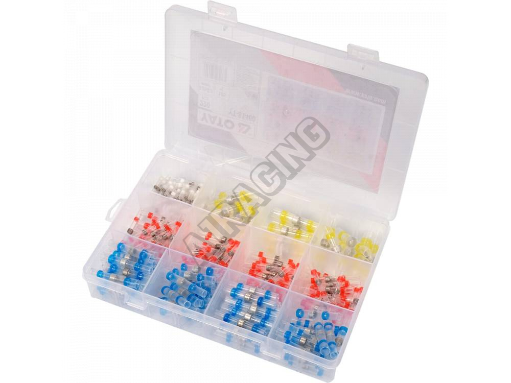 Sada 220 ks smršťovacích bužírek s cínovým pojidlem a lepidlem zajistí pevné a voděodolné spojení kabelů.