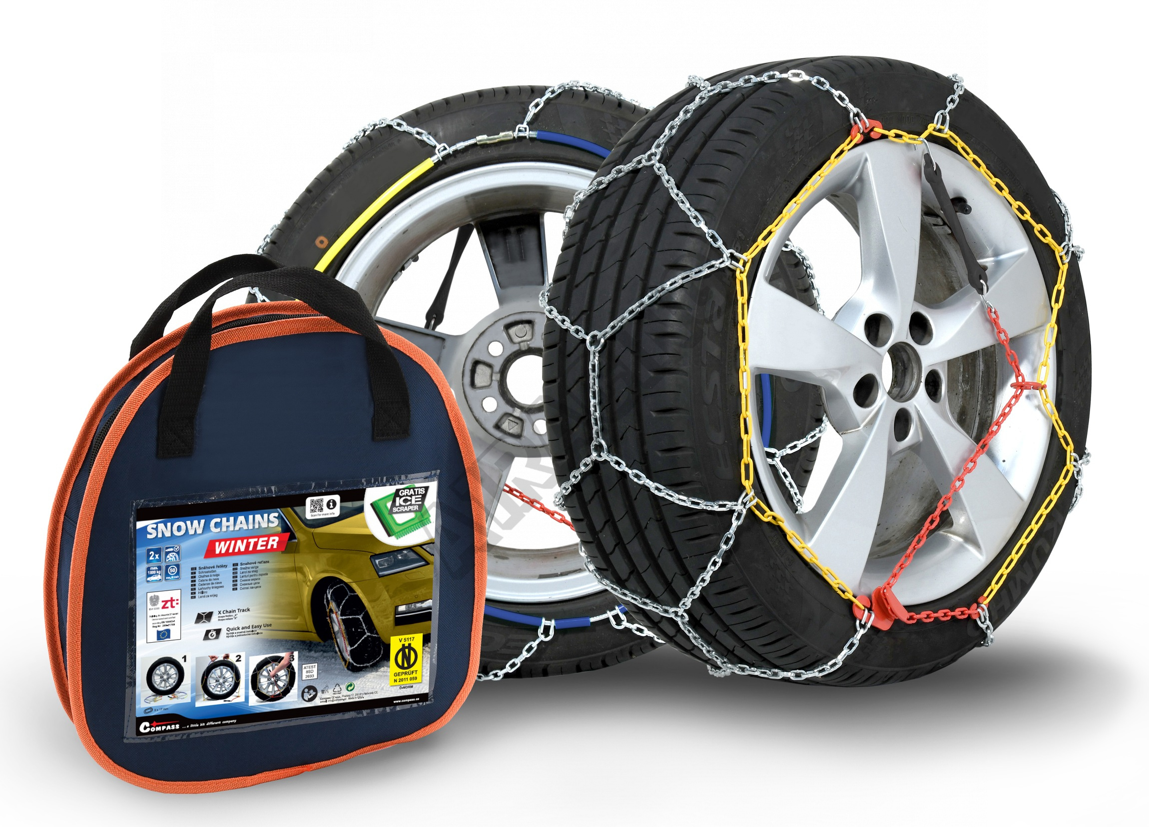 Rychloupínací sněhové řetězy, křížová stopa, sada 2kusy. Určeno pro vozy do hmotnosti 2000kg. Homologace GS TÜV, očko řetězu 3mm, 9mm. Baleno v praktické uzavíratelné textilní tašce ze silného materiálu. Uvnitř balení navíc praktická třístranná škrabka, ideální na sníh, led i vodu.
