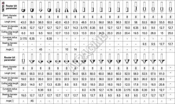 Disponují SK plátky a stopkou o průměru 8 mm. Všechny frézy se navíc pyšní řezacím břitem z tvrdokovu a vodicím kolečkem se spolehlivým ložiskem. Naleznete je navíc v přehledném a odolném kovovém kufru.