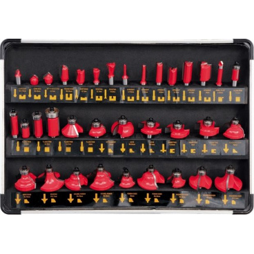 Sada fréz do dřeva, která přijde vhod každému pracovníkovi s frézkou. Obsahuje totiž 35 tvarovaných a kvalitních fréz do dřeva.