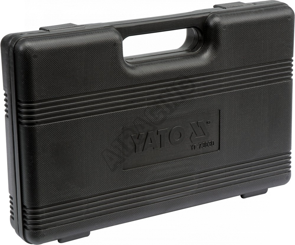 Tlakoměr má stupnici až do 35 barů. Vše je přehledně uloženo v plastovém kufru.