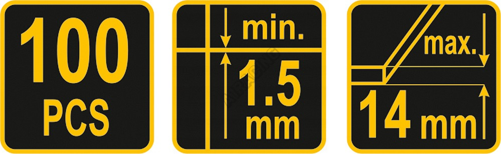 Celková délka sekáče je 172 mm. Šířka pracovní části je 16 mm, rukojeť s šestihranným profilem 9,4 m