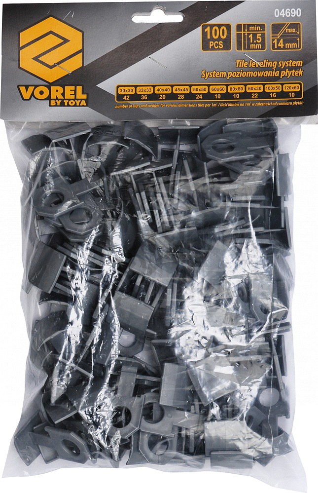 Nivelační podstavce pro rychlou a přesnou pokládku dlažby. Sada se skládá ze 100 ks křehkých podstav