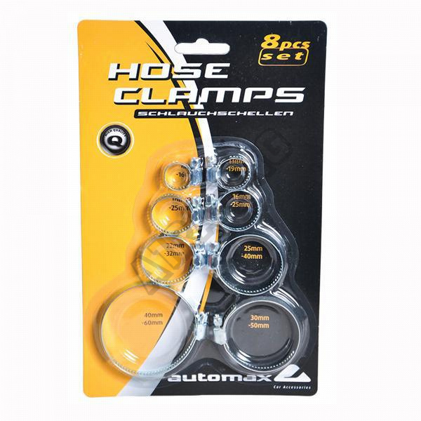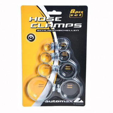 Spony na hadice sada 8ks Hadicové spony - sada 8ks, 1x-6 -16mm, 1x13-19mm, 2x16-25mm, 1x 22-32mm, 1