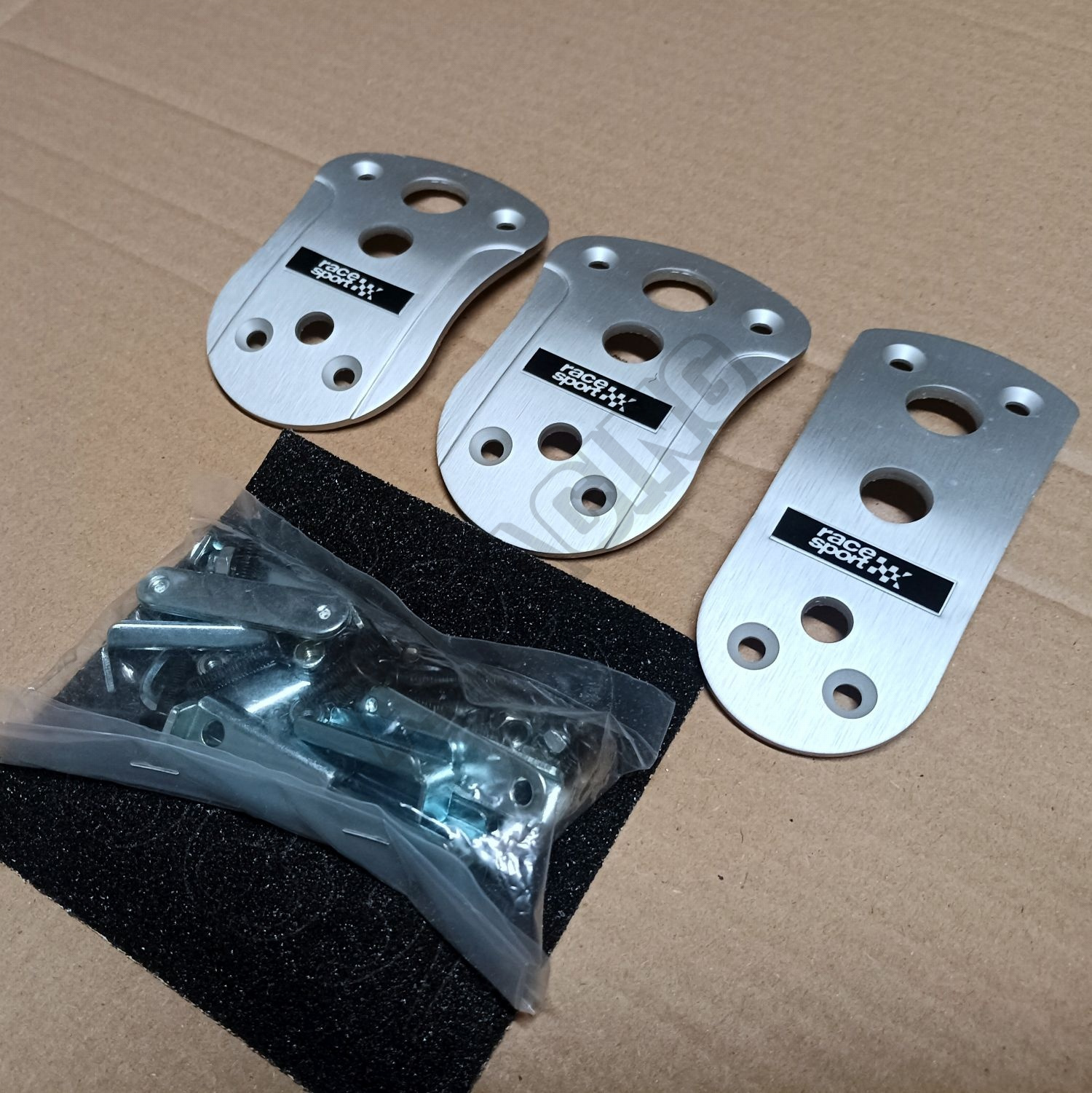 Určeno pro spojkový, brzdový a plynový pedál. Materiál: hliník, pryž. Nemusí se nic vrtat. Je zde spodní uchycení přes originální pedál.