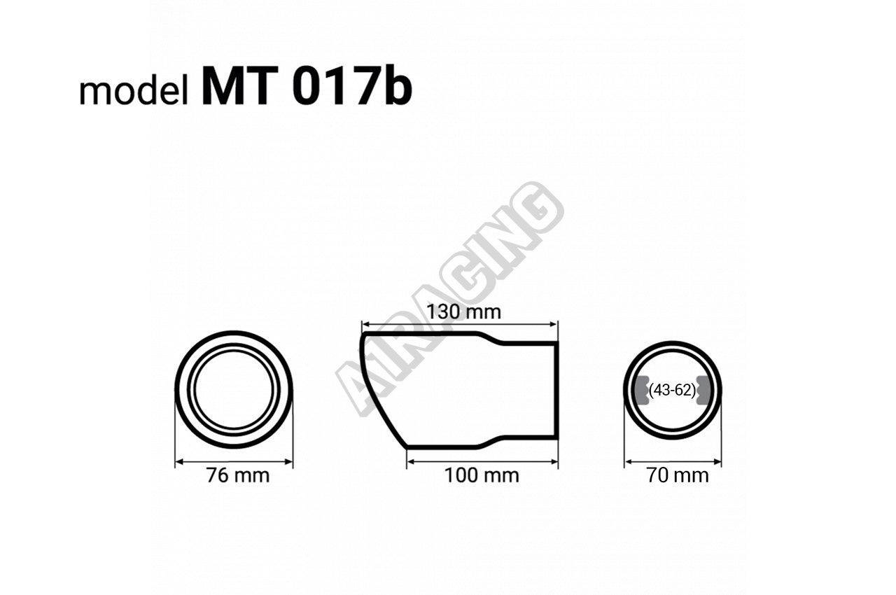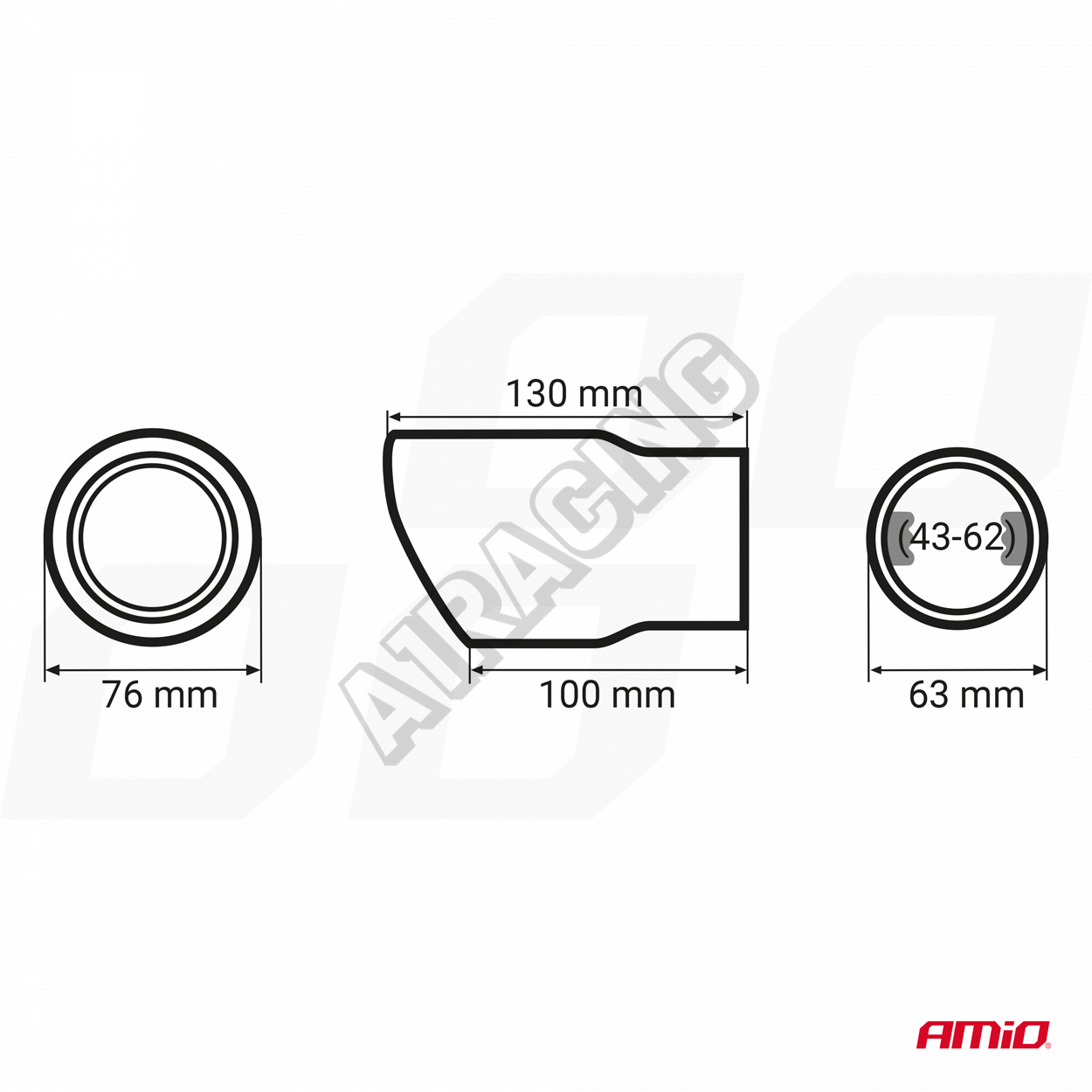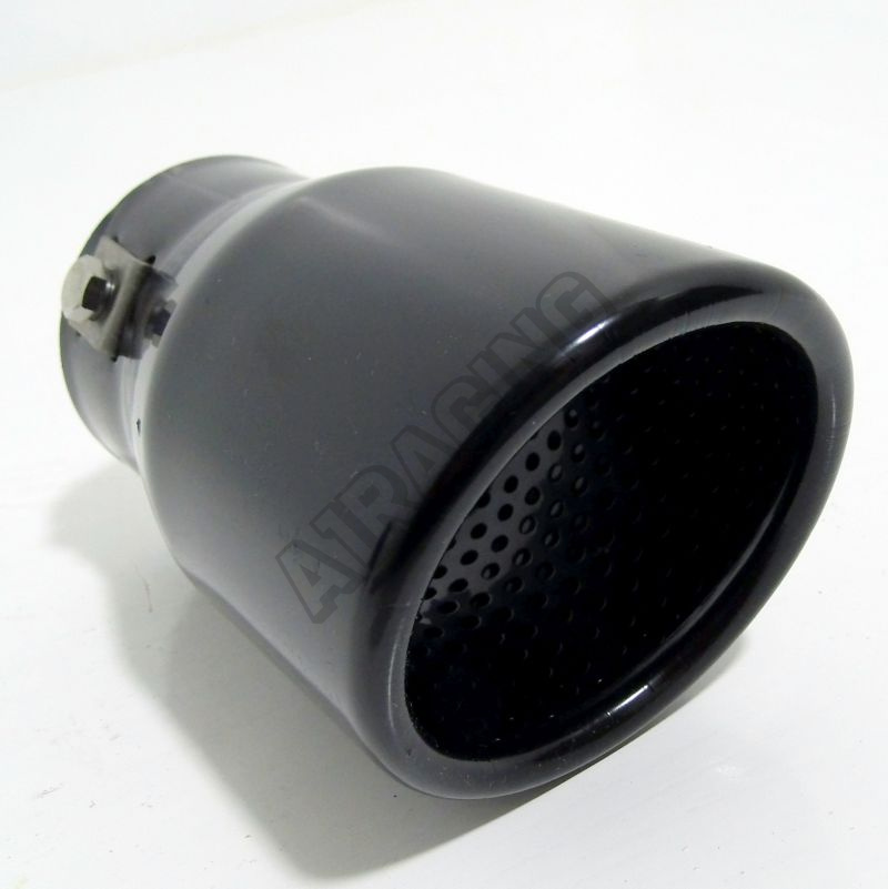 Efektní černé provedení s perforací uvnitř koncovky, délka 130 mm, vnější průměr koncovky 76 mm - mírně šikmá, průměr pro uchycení 43-62 mm na spony, pokud by jste chteli koncovku navařit, tak může být použita až pro průměr výfukové trubky 63 mm,