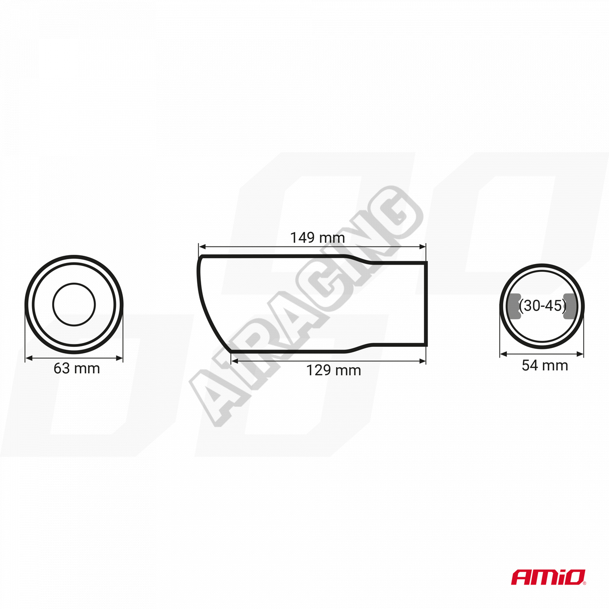 Roměry : délka 150 mm, průměr koncovky 63 mm, průměr pro nasazení 32-51 mm a nebo navaření do 54 mm