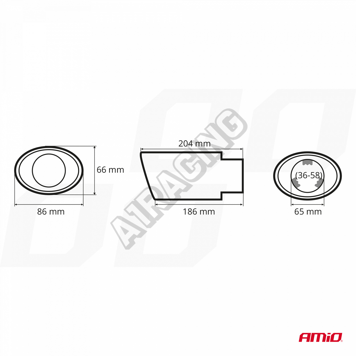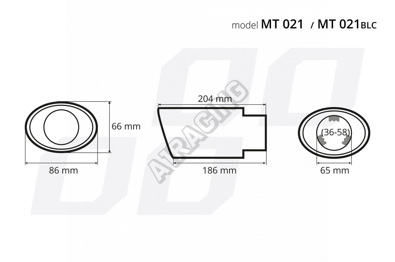 Efektní titan provedení s dvojitým pláštěm koncovky proti přehřátí horní vrstvy, délka 204 mm, vnější průměr koncovky 86x66 mm, průměr pro uchycení je 36-60 mm na spony. Pokud by jste chteli koncovku navařit, tak může být použita až pro průměr výfukové trubky 67 mm.