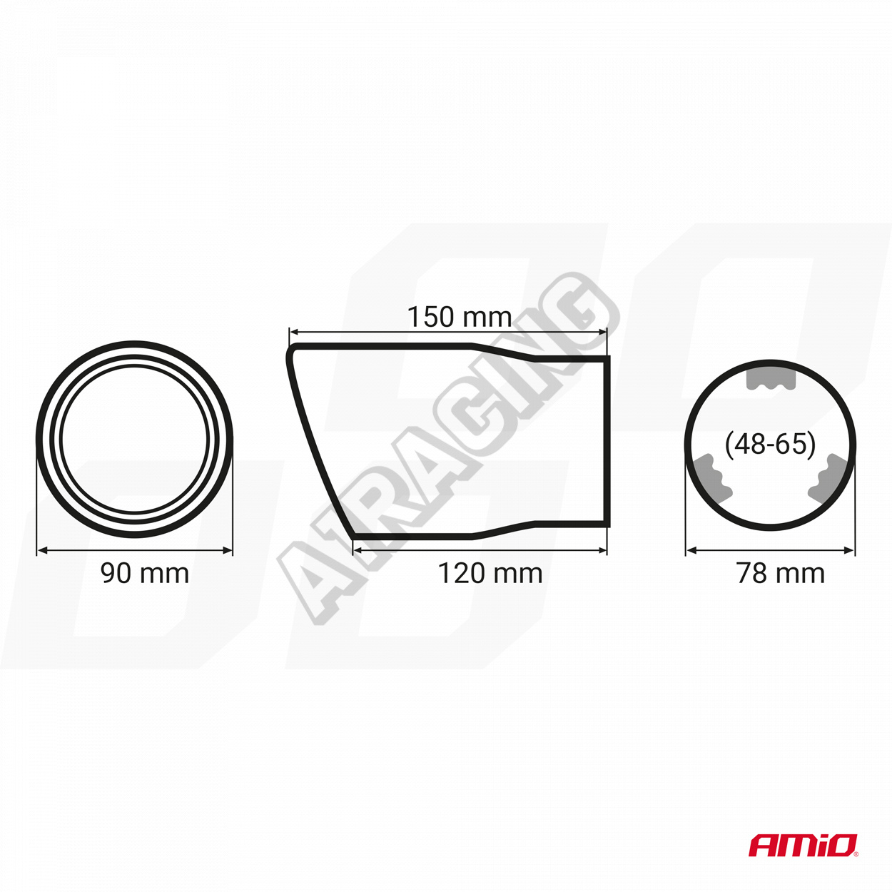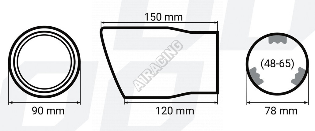 Efektní titan provedení s dvojitým pláštěm koncovky proti přehřátí horní vrstvy, délka 150 mm, vnější průměr koncovky 90 mm, průměr pro uchycení je 48-65 mm na spony. Pokud by jste chteli koncovku navařit, tak může být použita až pro průměr výfukové trubky 78 mm.