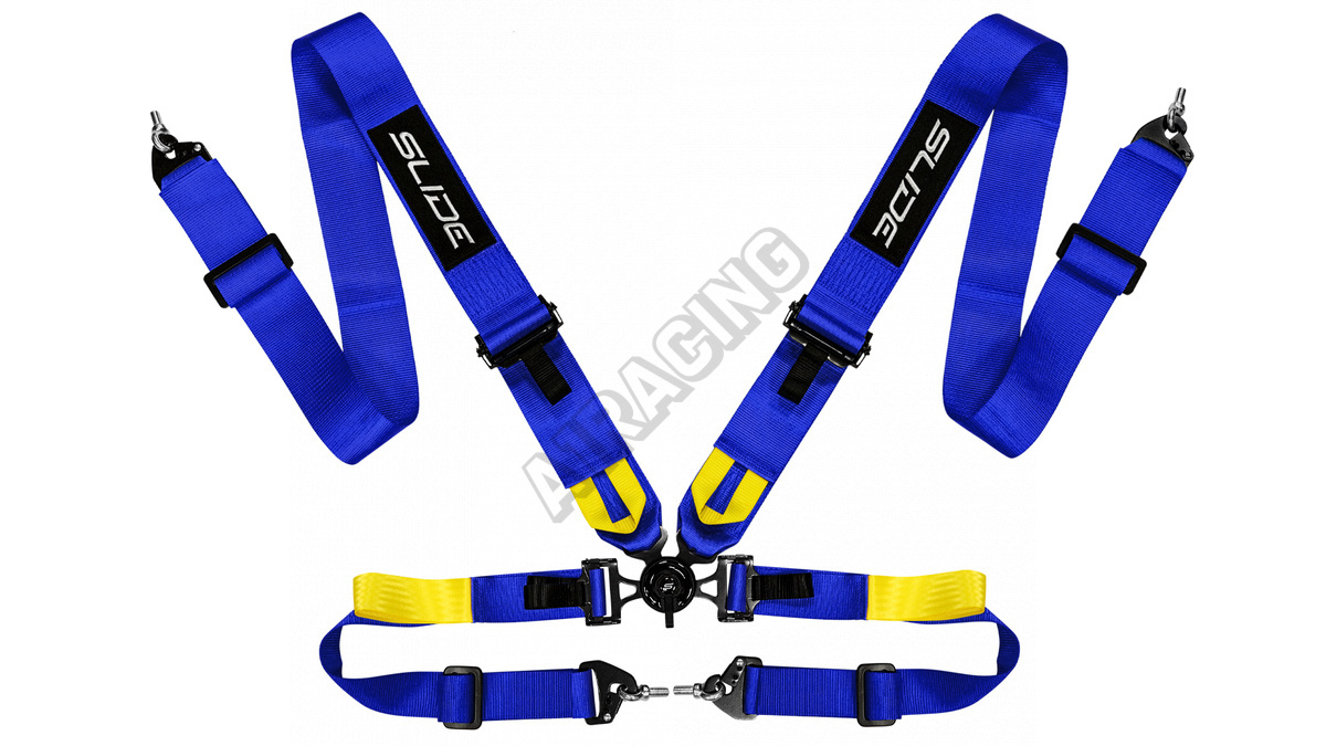 Sportovní bezpečnostní pásy SLIDE 4-bodové, vyrobené z tkaniny a částečně z plastu.Šířka pásu - 3"Po