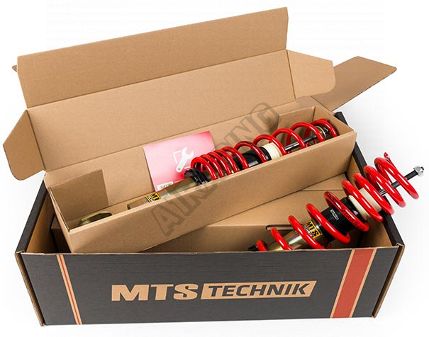 Stavivetlelný podvozek od MTS se snížením předek / zadek 25-50 / 25-50 mm. Nastavuje se na spodní závitové noze s Hexa Coil maticemi pomocí klíče. Je zde zvýšená antikorozní ochrana zlatým zinkem a černým eloxem. Většina těchto sad má pružiny německého výrobce Eibach. Tyto podvozkové sady maji rakouskou homologaci TUV.