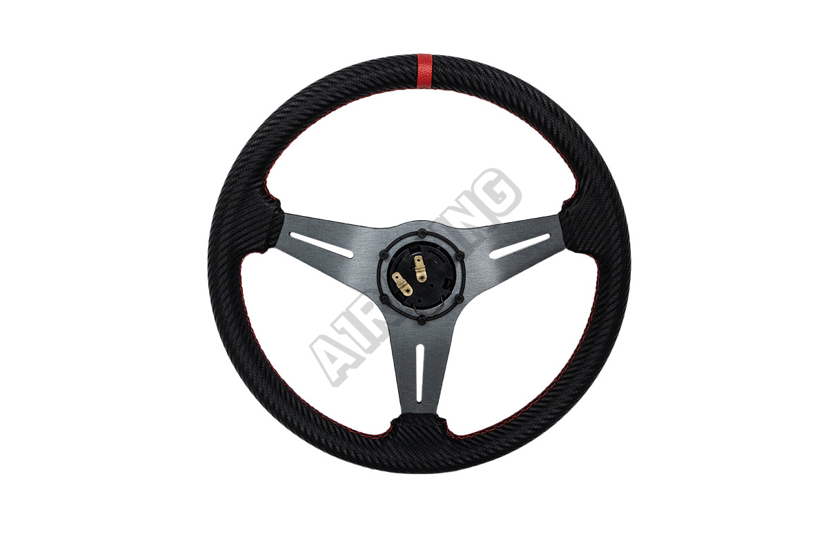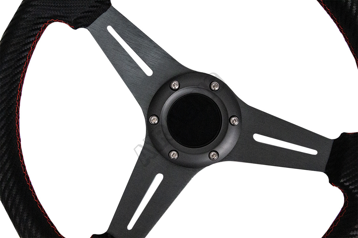 Sportovní volant černý karbon R 350 mm Výška věnce imitovaná karbonem je od středu 2 cm, průměr vo