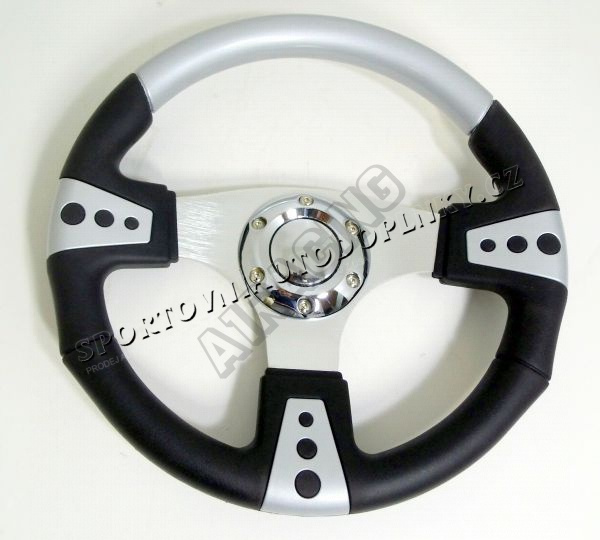 Krásný sportovní design v nekluzavém černém semiši. Výška věnce je od středu 2 cm, průměr volantu 350 mm, šířka věnce 35 mm, 3 ramena, tuhá konstrukce, určeno pro nábu 70 mm na 6 děr.