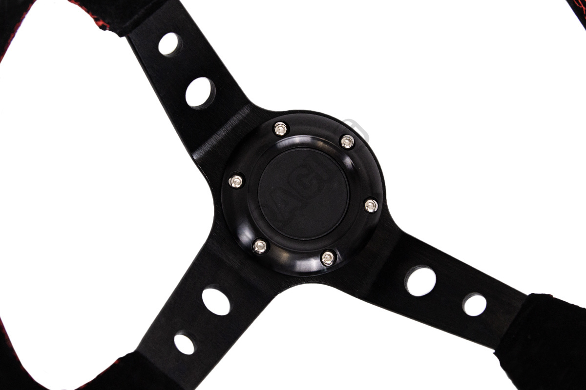 Sportovní volant WRC černý semiš 350 mm (červený steh)