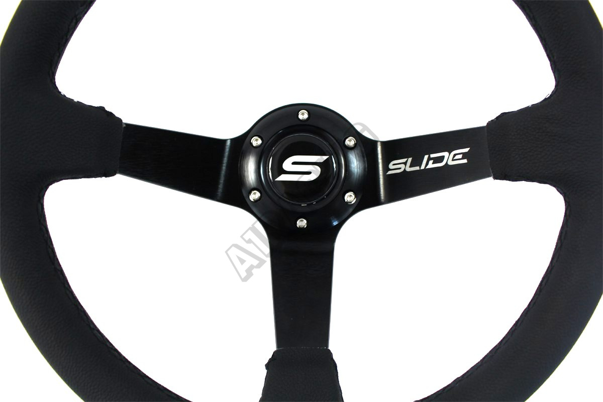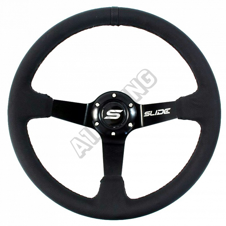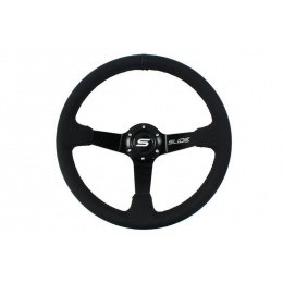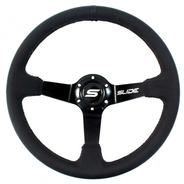 Kvalitní sportovní volant WRC z pravé černé kůže, určeno pro standartní 6 děrovou nábu o průměru 70 mm, střední část volantu o proti krajní je utopená o 80 mm.