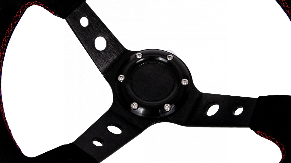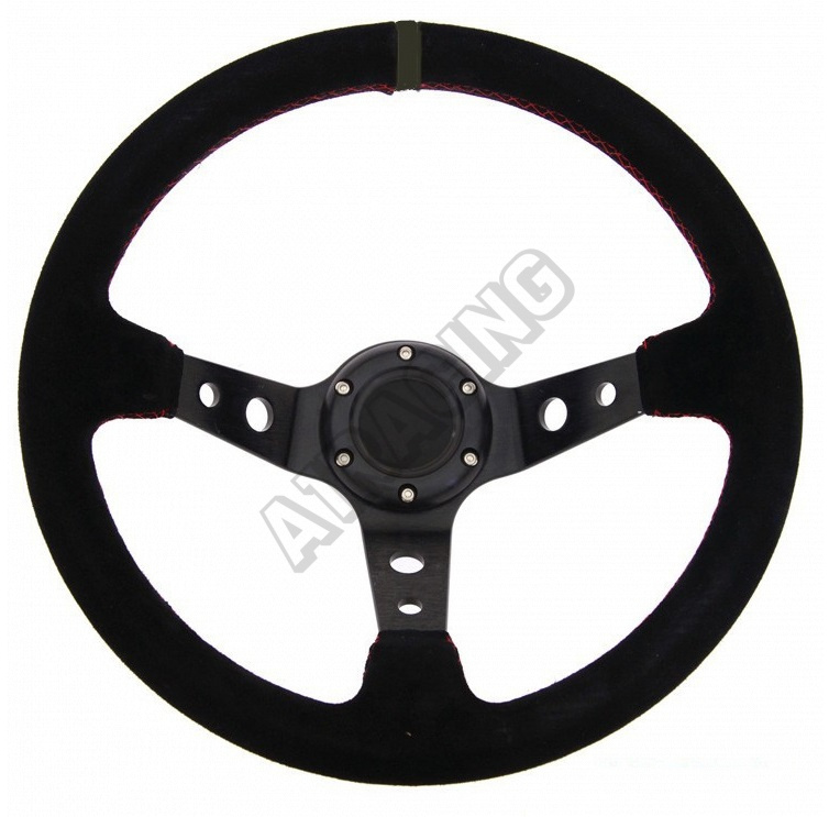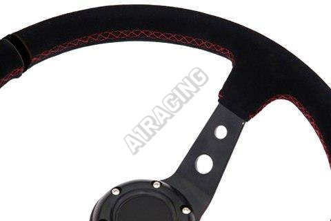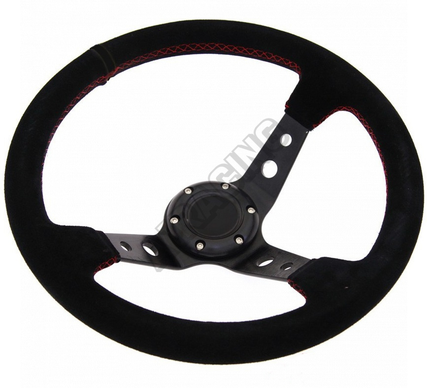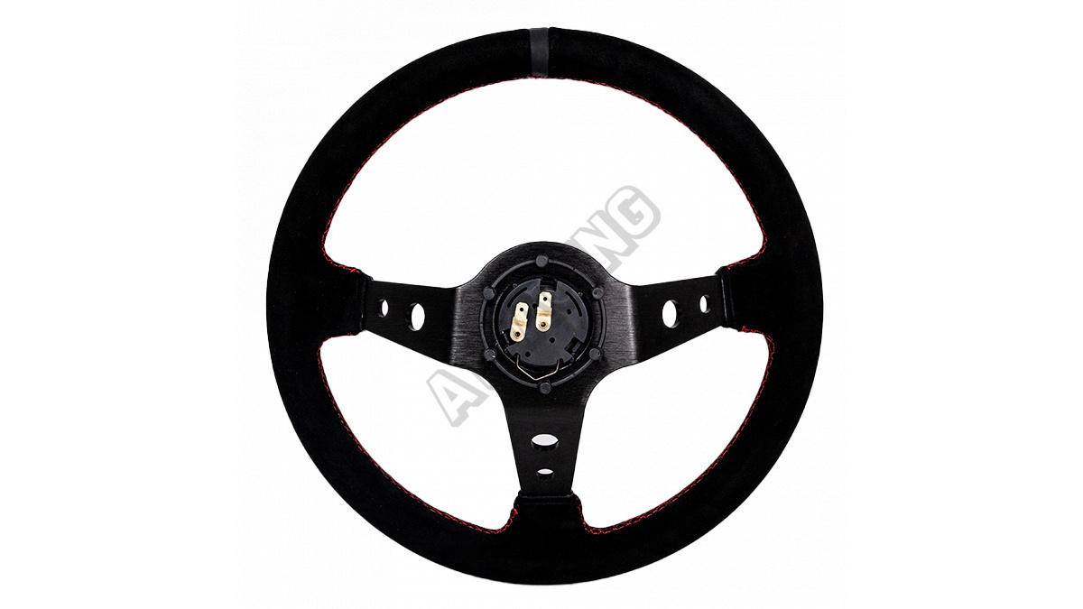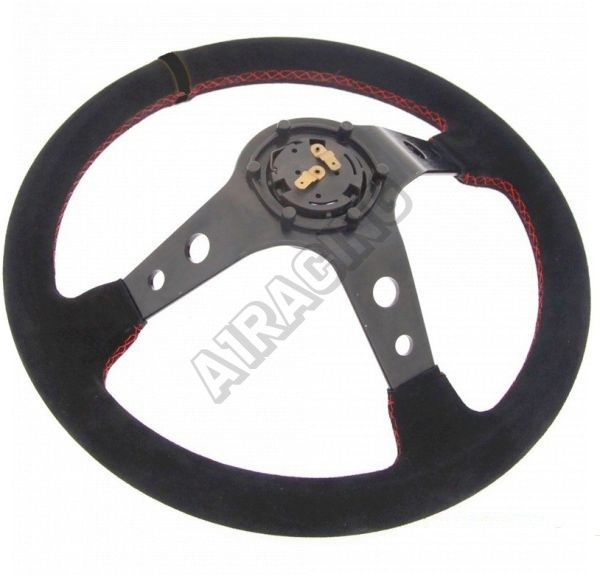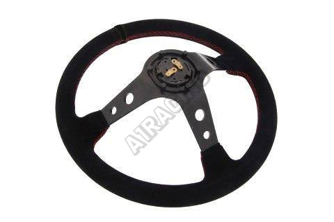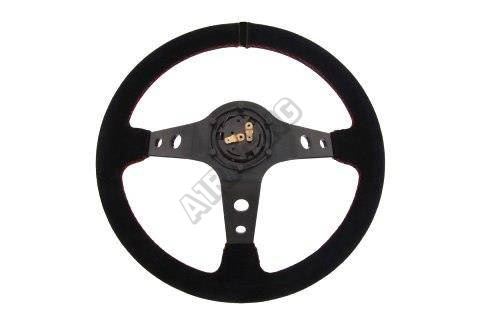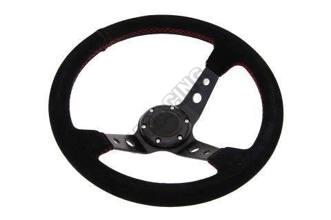 Sportovní volant WRC Rally černý/červený steh 350 mm Výška věnce od středu 8 cm, průměr volantu 35