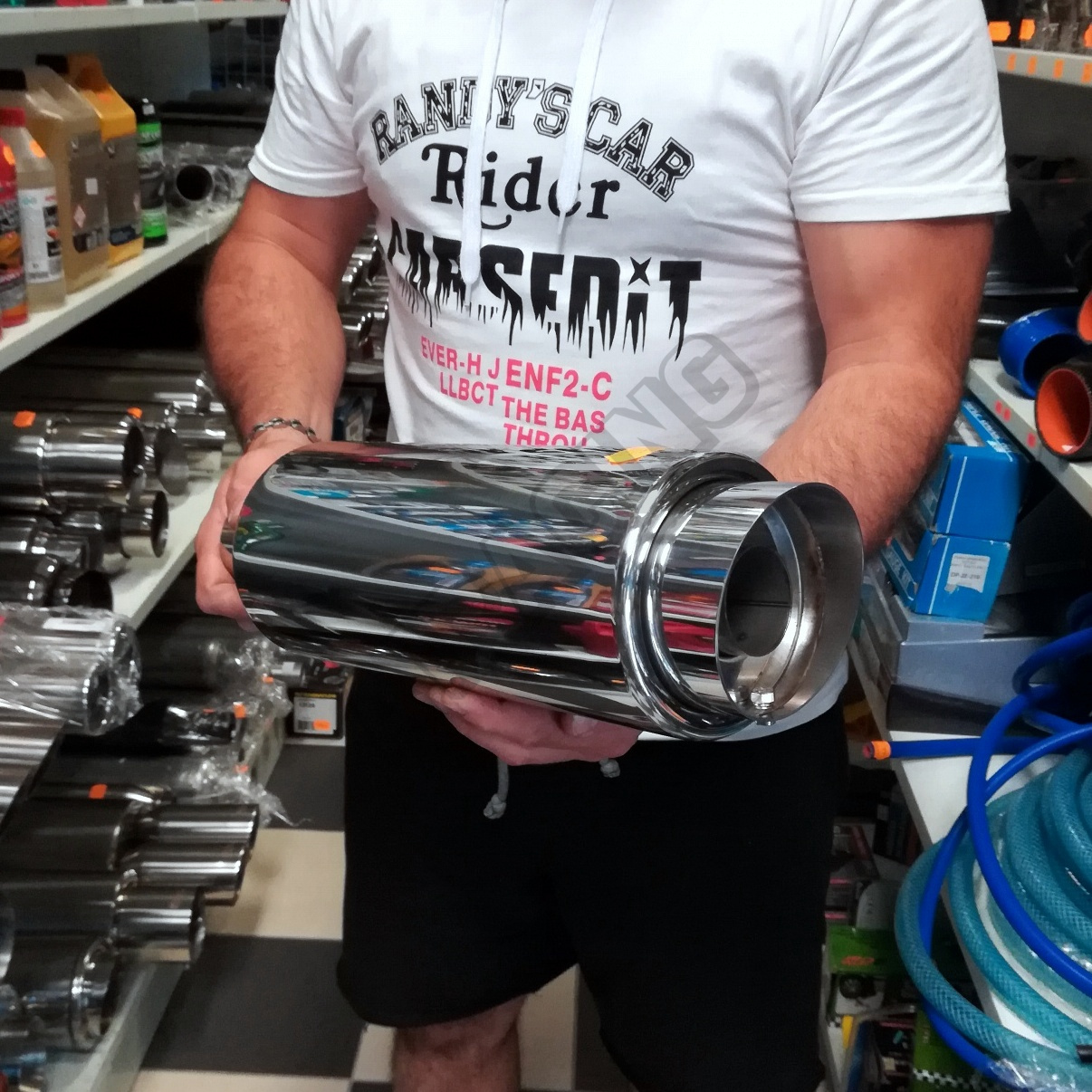 Nerez sportovní univerzální výfuk s nastavitelným silencerem v zadní části, kterým ještě můžete regulovat zvuk + - 7 Dcb. Rozměry výfuku jsou uvedeny v galerii fotek