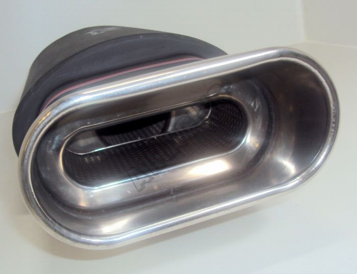 - ocelový sportovní výfuk průchozí konstrukce s nerez oválnou koncovkou, která má navíc vlastní tlumící vložku s perforací, tak že koncovka není tak žhavá jako běžná levná koncovka bez perforace, k tomuto výfuku zdarma dodáváme nerez sponu pro uchycení výfuku,