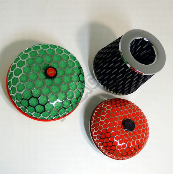Velký sportovní vzduchový filtr hřibovitého tvaru ve stylu japonských filtrů HKS. V galerii fotek můžete vidět o kolik je vetší než běžný filtr podobného tvaru. Fitr jde během 5 sekund rozložit a připravit na vyčištění. 3-vrstvá struktura filtrační části zajišťuje maximální průchodnost vzduchu při velmi dobrém zachytávání nečistot. spodní část na uchycení není gumová, ale pevná plastová. Tak že pokud filtr nenasazujete na gumovou spojku, ale spojku pevnou, je třeba ji k němu dokoupit .