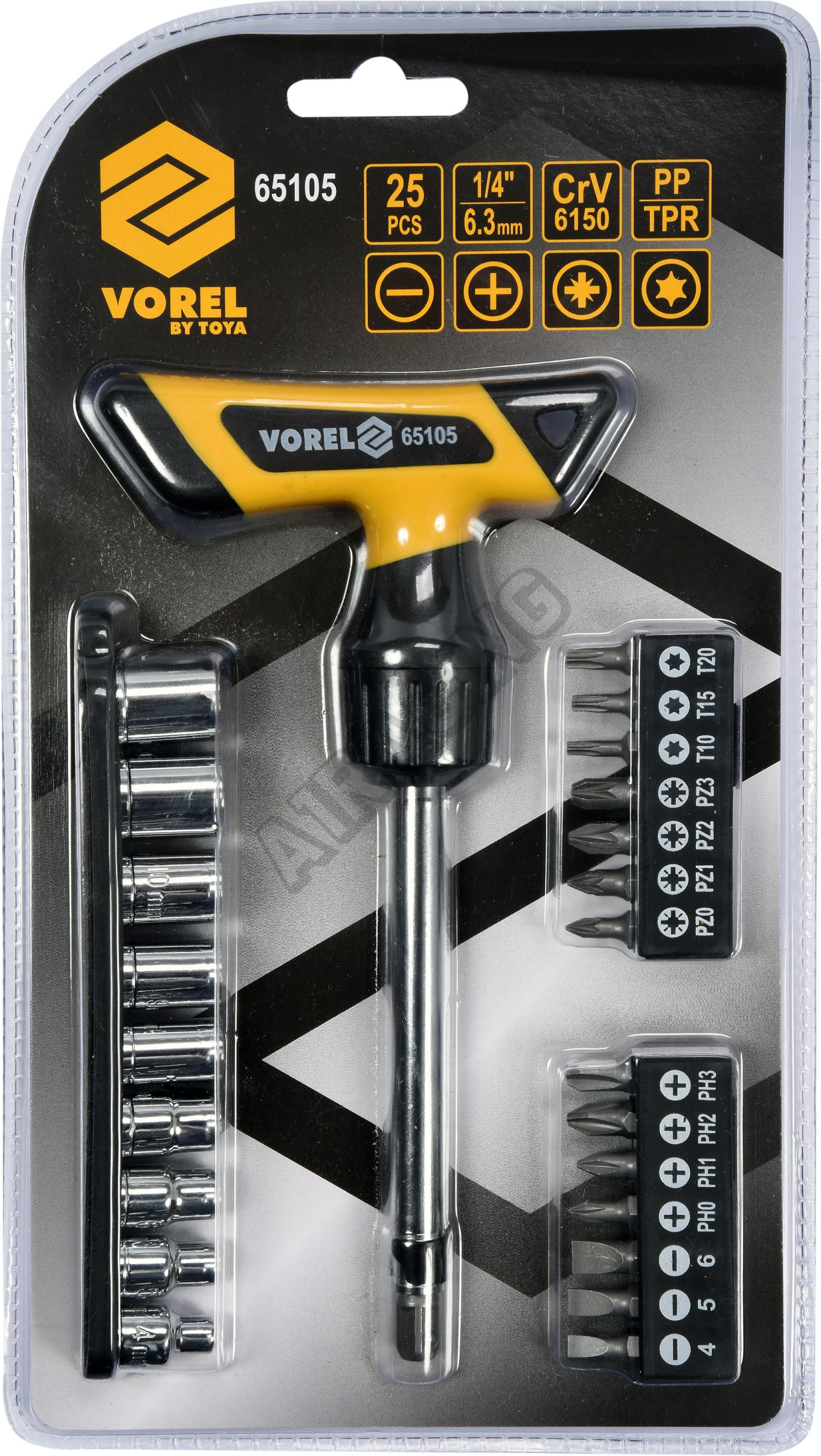 Šroubovák ráčnový s příslušenstvím 25ks vyrobené z kvalitní oceli CrV 6150.