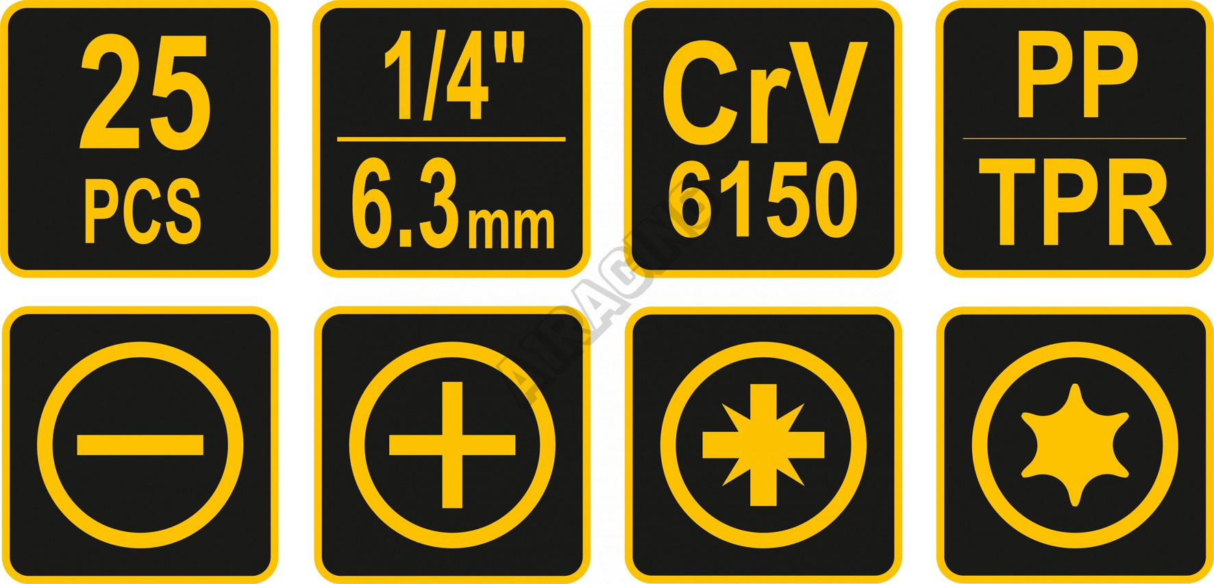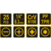 - 4x bit šroubovací PZ: PZ0; PZ1; PZ2; PZ3 (25 mm)