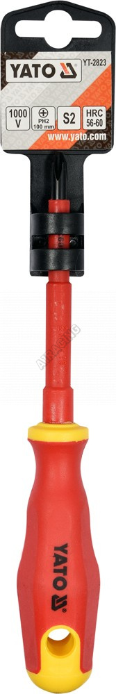• Křížový břit PH-2 • Délka dříku 100 mm • Celková délka 185 mm • Dřík z kvalitní slitiny oceli S2 tvrzený na tvrdost HRC 56-60 • Izolace z dvoubarevného plastu odpovídá normě IEC 60900: 2004 • Zaručuje bezpečnou práci pod napětím do 1000 V