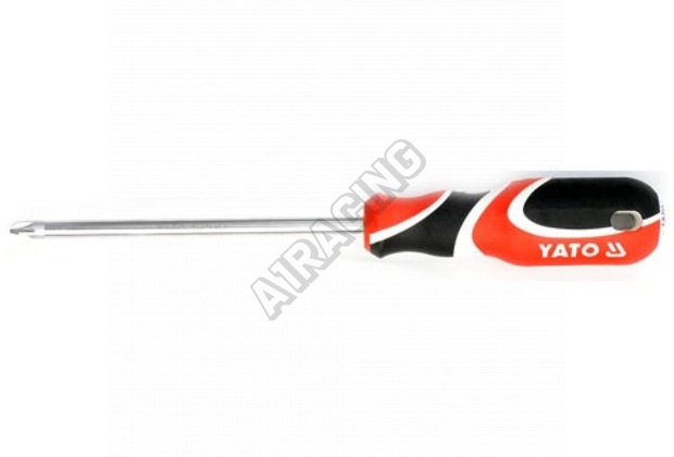 Šroubovák Pozidrive. Zakončení šroubováku z oceli se symbolem SVCM55. Saténový povrch vřetena, magnetický pracovní hrot, tvrzený a pískovaný, což zabezpečuje jeho dlouhodobou pevnost a životnost. Rukojeť je vyrobena z pečlivě vybraných materiálů různé tvrdosti.