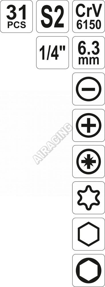 Sada bitů s ergonomickou rukojetí.Vyrobeno z nerezové oceli S2. Bity nesou symbol CrV6150, což zabez