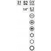 Vyrobeno z nerezové oceli S2. Bity nesou symbol CrV6150, což zabezpečuje jejich dlouhodobou pevnost a životnost.