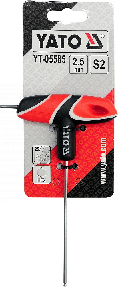 Klíč v provedení T šroubovák, osazený 2x imbus klíčem s kulovým zakončením (1x dlouhý, 1x krátký) a ergonomickou rukojetí, díky které je jeho použití opravdu snadné. Vyrobeno z oceli S2, která zaručuje dlouhou životnost.