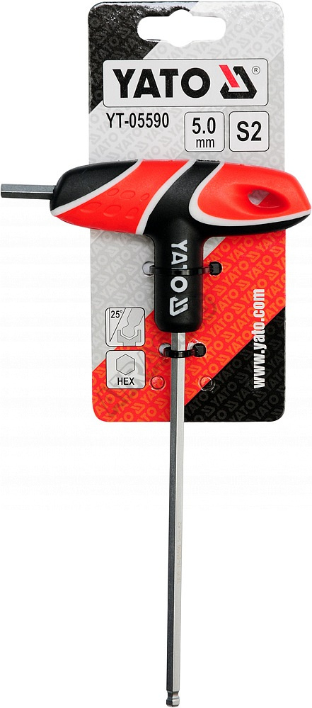 Klíč v provedení T šroubovák, osazený 2x imbus klíčem s kulovým zakončením (1x dlouhý, 1x krátký) a ergonomickou rukojetí, díky které je jeho použití opravdu snadné. Vyrobeno z oceli S2, která zaručuje dlouhou životnost.