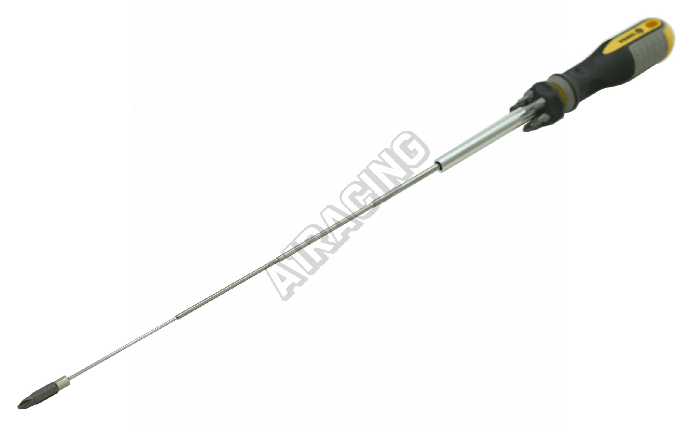 Teleskopický šroubovák magnetický s příslušenstvím, obsahuje bity 1/4" ploché 3.0, 4.0, 5.5mm, křížové phillips PH1, PH2, křížové pozidrive PZ1, PZ2.