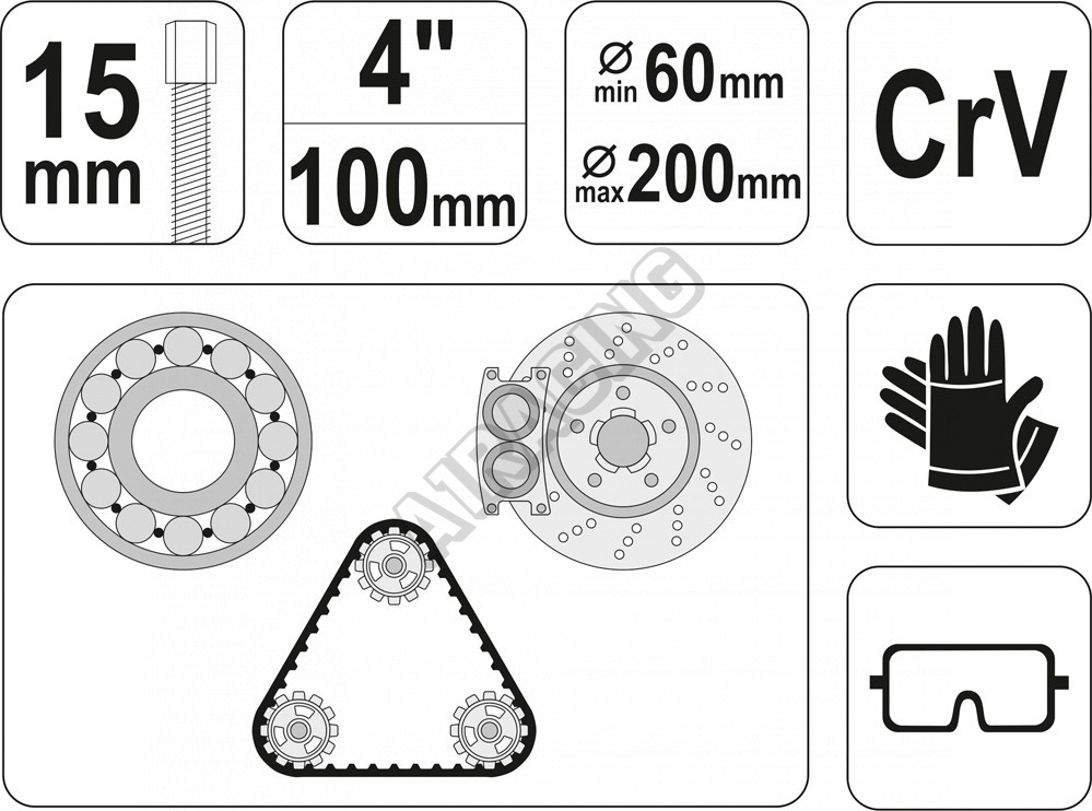 Stahovák ložisek 60 mm - 200 mm vyrobený z chrom-vanadové oceli CrV6150. Vysoce kvalitní produkt pro profesionály zajišťující dlouhodobý a spolehlivý provoz.