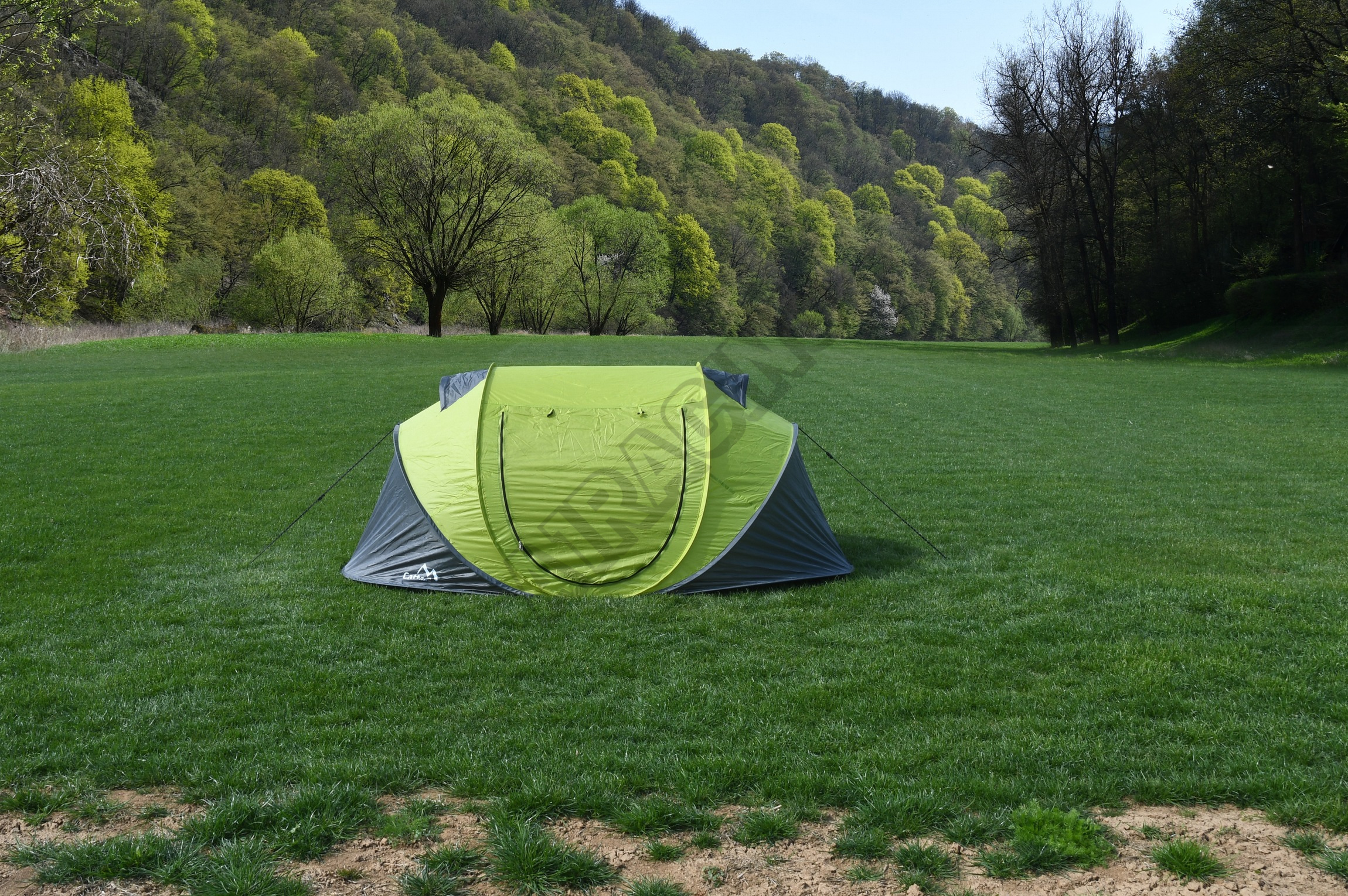 Stan se samorozkládací konstrukcí super quick, s rozměry 230 x 130 x 95 cm, vhodný pro 2 osoby.