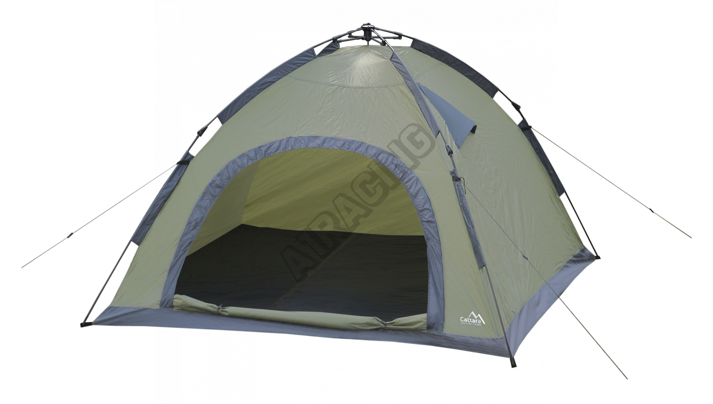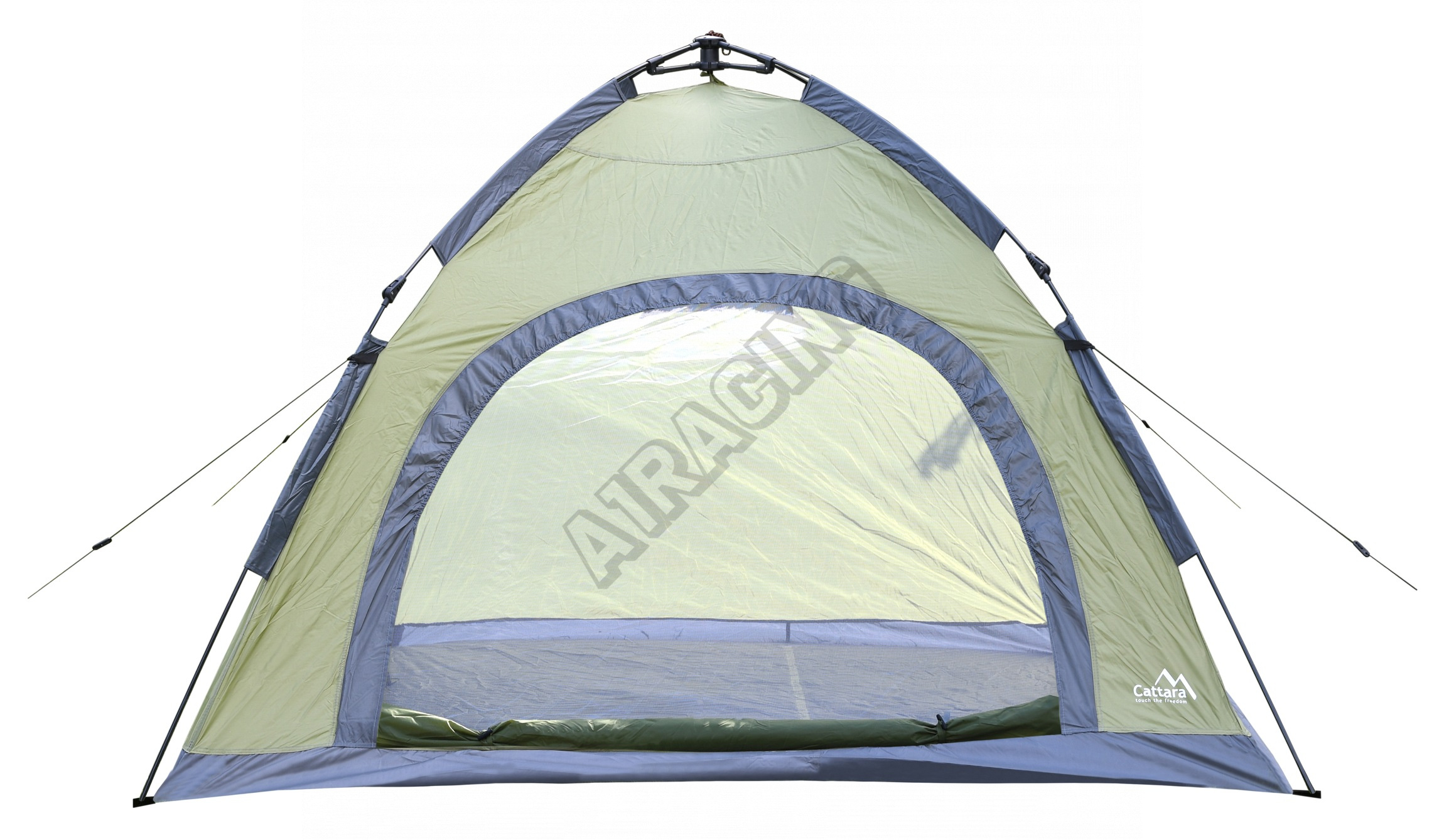 Rychle sestavitelný, voděodolný stan do jakéhokoliv počasí, o rozměrech 280 x 220 cm a výšce 140 cm, vhodný pro 3-4 osoby.