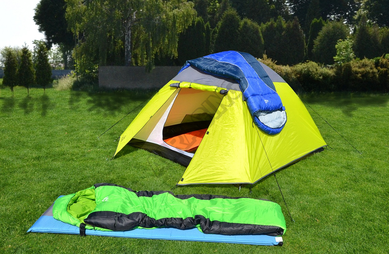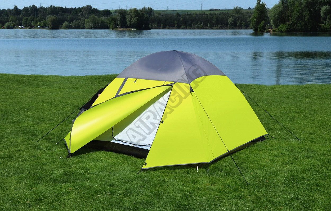 Dvouplášťový stan do jakéhokoliv počasí, s rozměry 210 x 210 x 110 cm, prostorný stan vhodný pro 3 osoby.