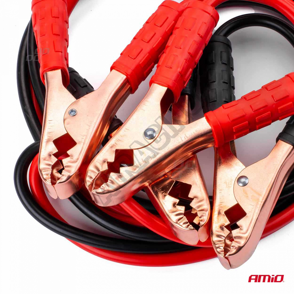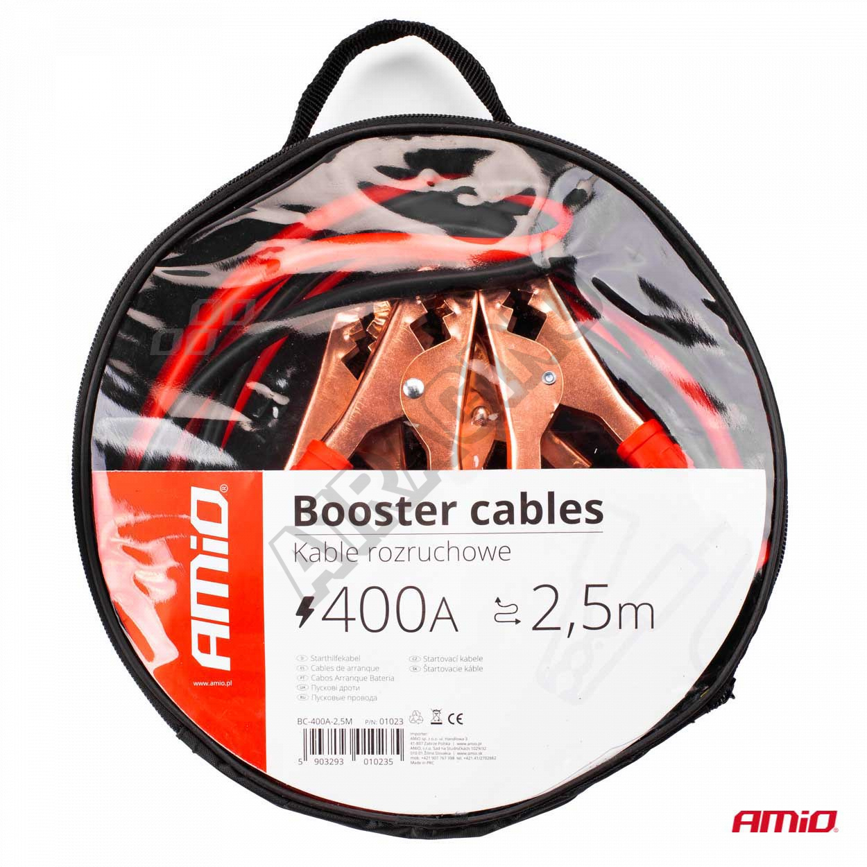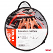Měděné, barevně označené startovací kabely se svorkami na akumulátor. Max. proud 400 ampér, délka 2,5 metru .