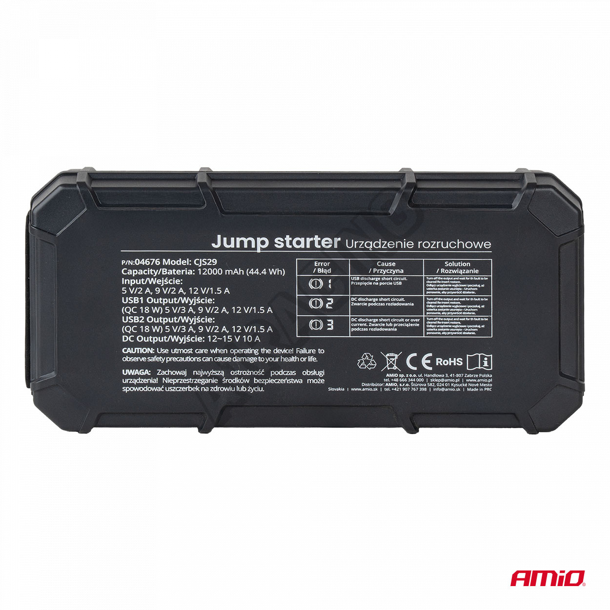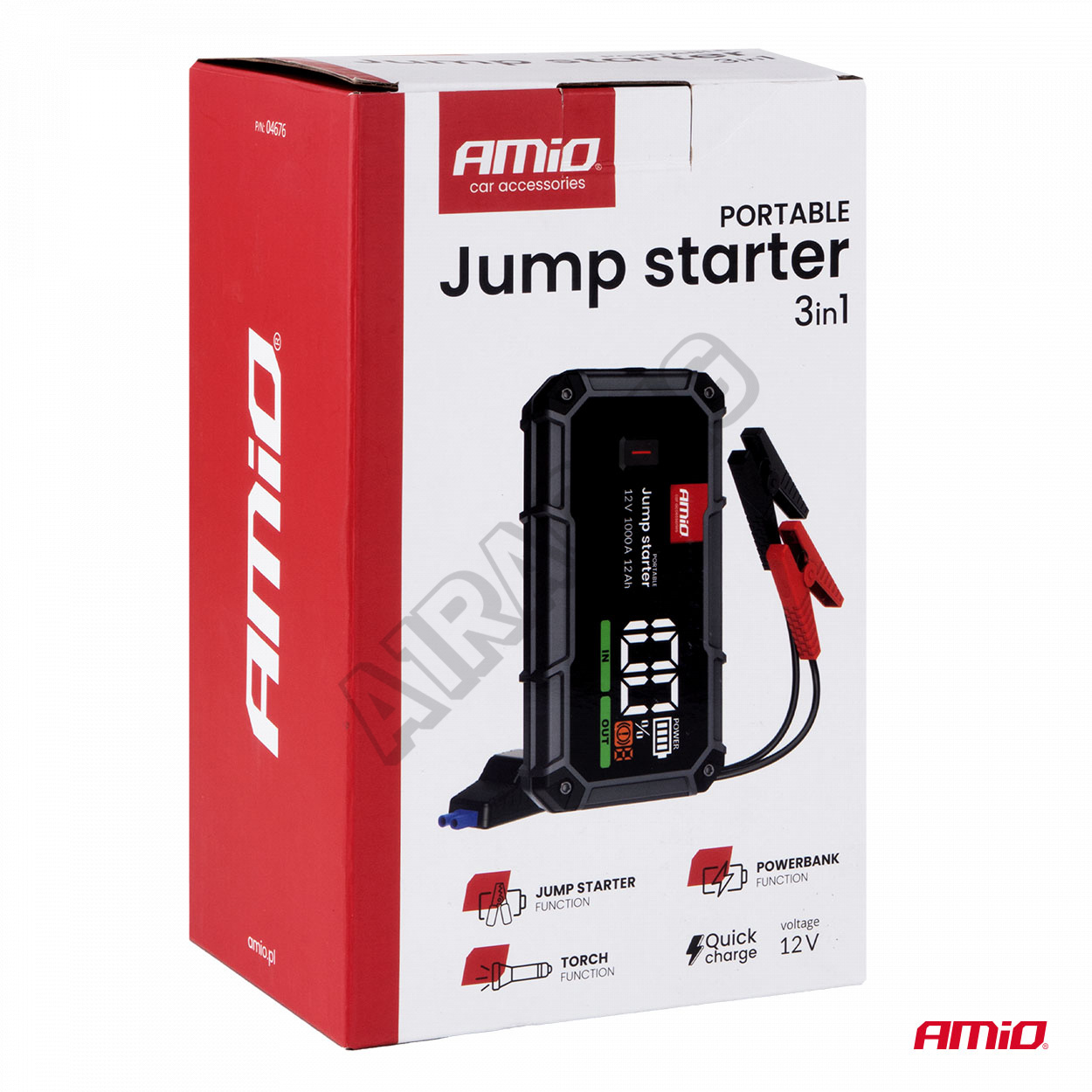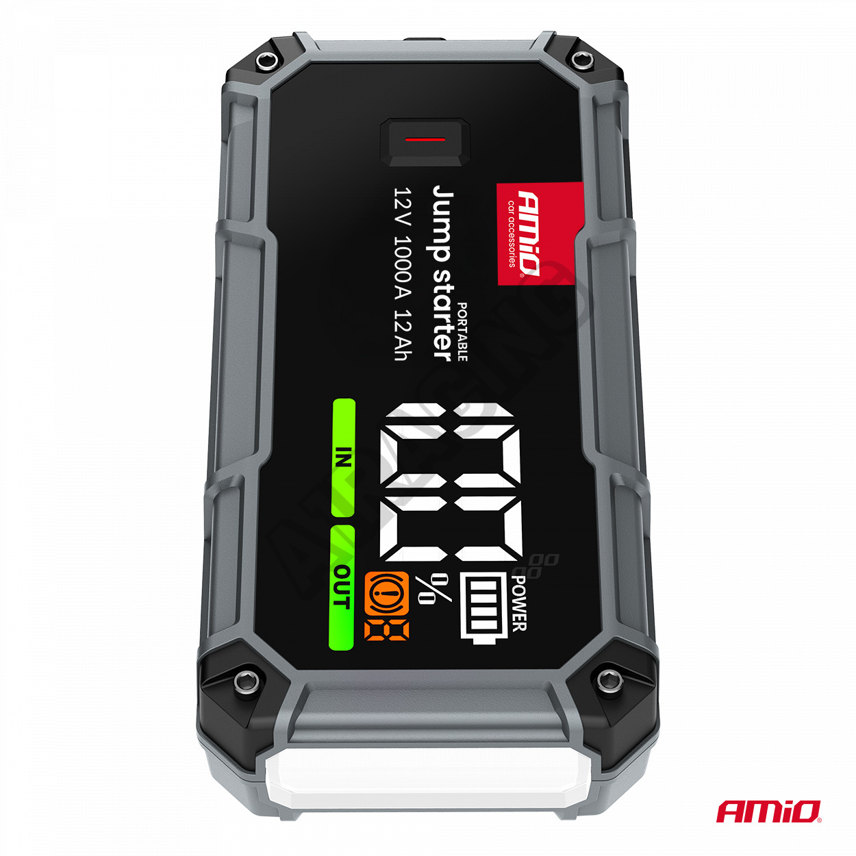 Startovací zařízení 3v1 booster powerbank svítilna LED 12V 12Ah 1000A PRO AMIO-04676