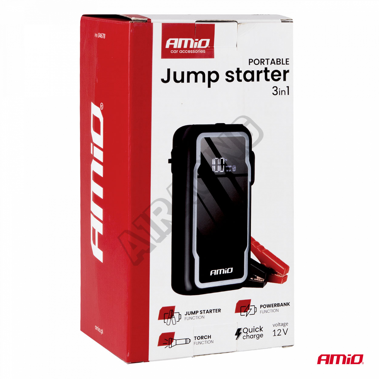 Startovací zařízení 3v1 booster powerbank svítilna LED 12V 12Ah 1600A AMIO-04678