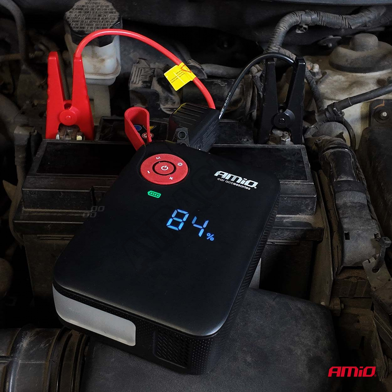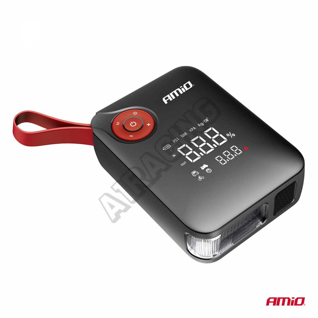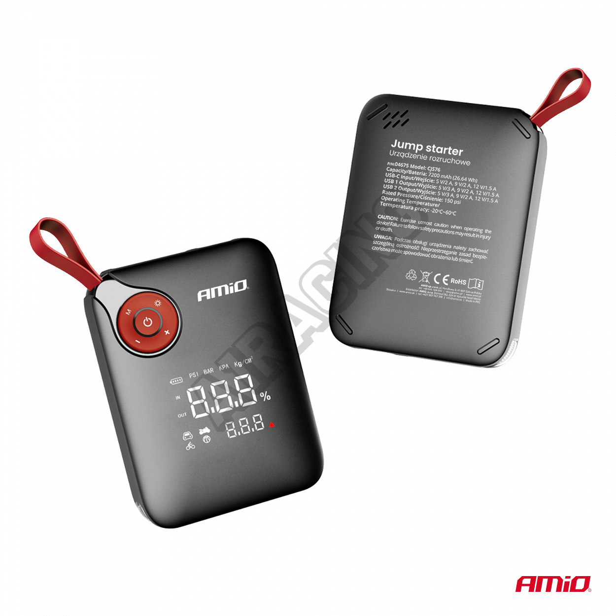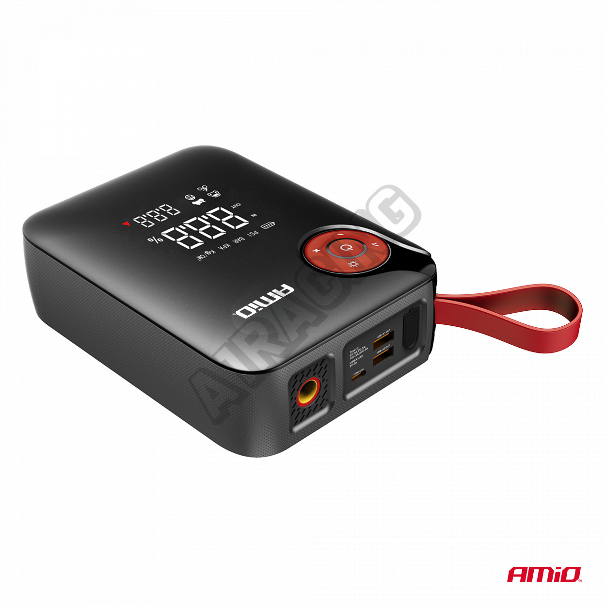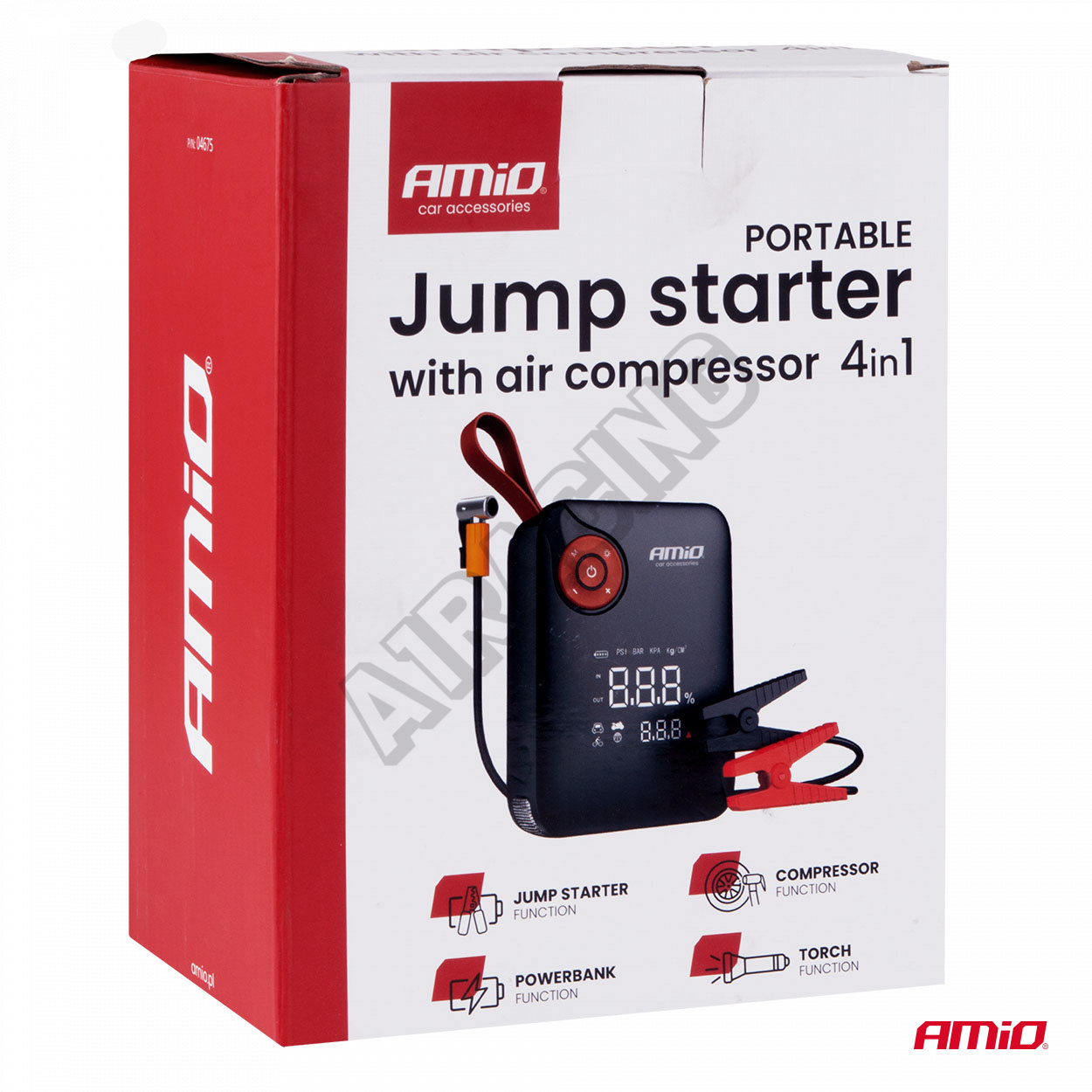 Startovací zařízení AMiO Mini 4v1 je kompaktní a všestranné zařízení, které kombinuje funkce startovacího boosteru, vzduchového kompresoru, powerbanky a LED svítilny. Navzdory malým rozměrům nabízí plnou funkčnost a vysoký výkon, osvědčuje se jak v dílenských aplikacích, tak při každodenním používání.