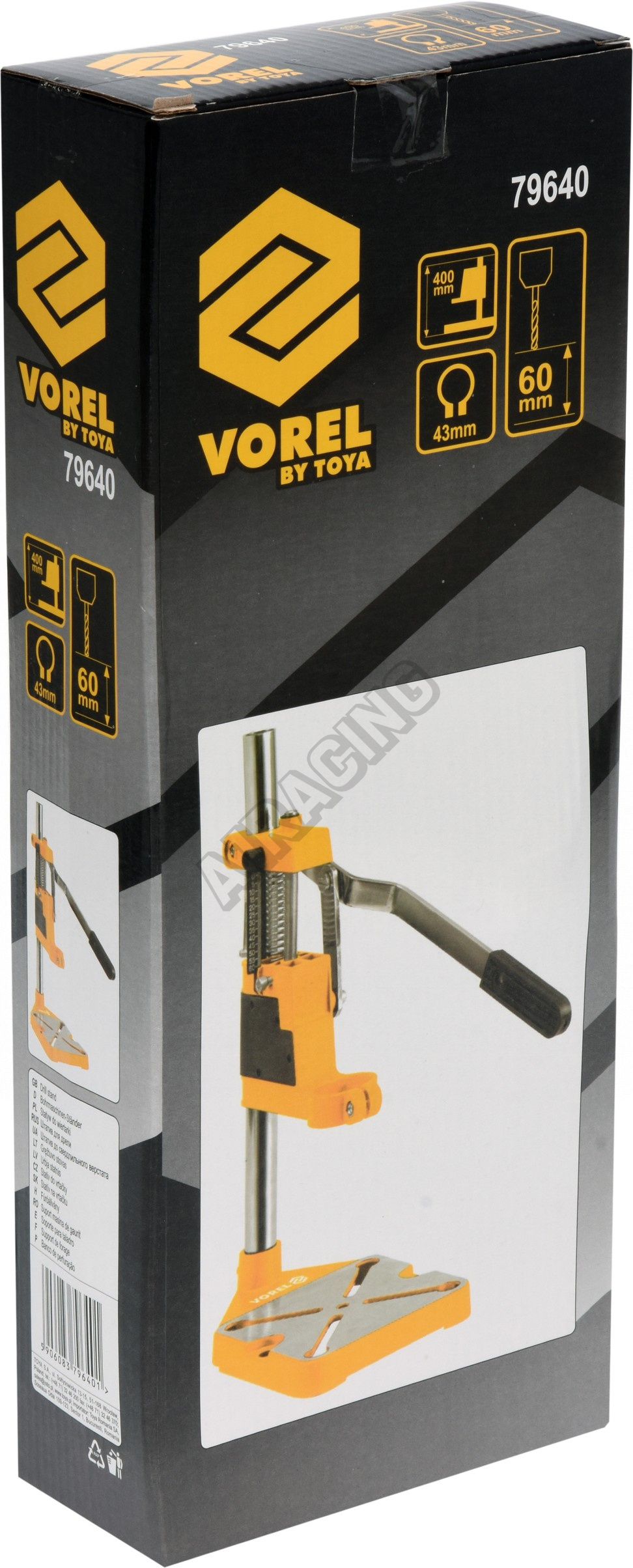 Stojan na vrtačku mění vrtačku na multifunkční a praktické zařízení. Stojan umožňuje vertikální změnu polohy připojené vrtačky, díky níž snižuje pravděpodobnost lomu nebo poškození vrtáku.