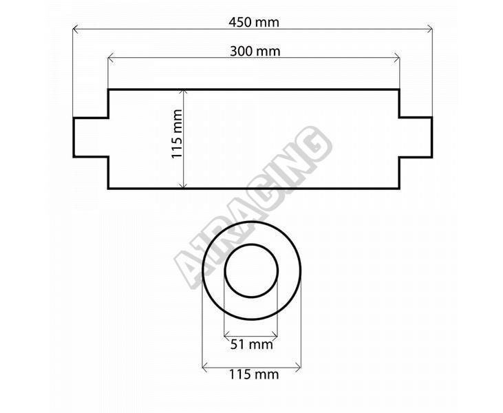 Středový tlumič 51mm TurboWorks RS 304SS 300mm