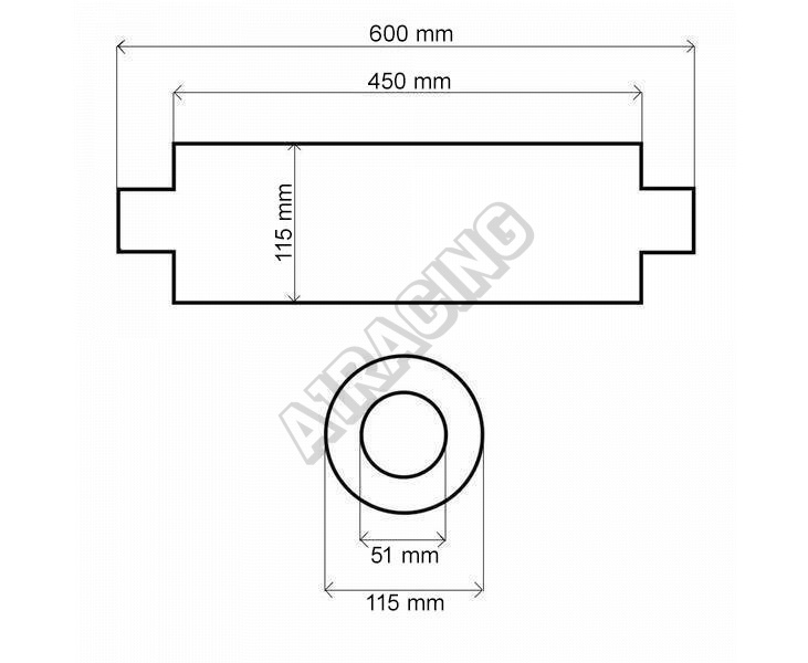 Průchozí středový tlumič vyrobený z nerezové oceli 409SS.Rozměry: celková délka: 600mm, délka pouzdr