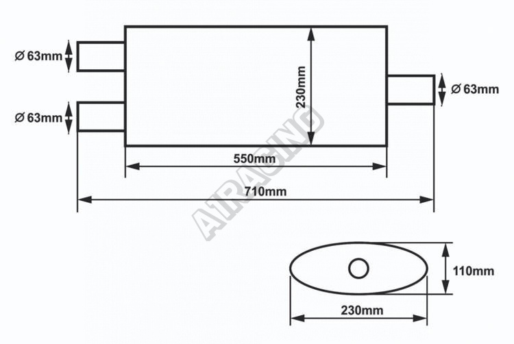 Středový tlumič 63,5mm SLIDE 304SS 550mm